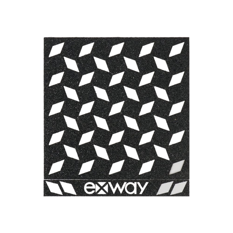 Náhradní grip tape pro Exway Atlas. Rhombus Grip má oproti normálnímu gripu mnohem vyšší hrubost. Balení obsahuje úzký obdelník s Exway logem a 3 čtverce, do kterých jsou v pravidelném vzoru vyřezány kosočtverce. Jednotlivé části gripu lze na desku boardu umístit libovolně.